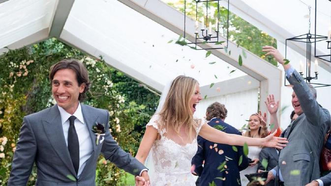 Paltrow membagikan satu foto saat berjalan di lorong bersama suaminya di Instagram dan memberinya penjelasan, "Butuh satu menit untuk mendapatkan foto bersama, tetapi akhirnya, bagi mereka yang meminta, sedikit melihat ke dalam hari terbaik dalam hidup kami."