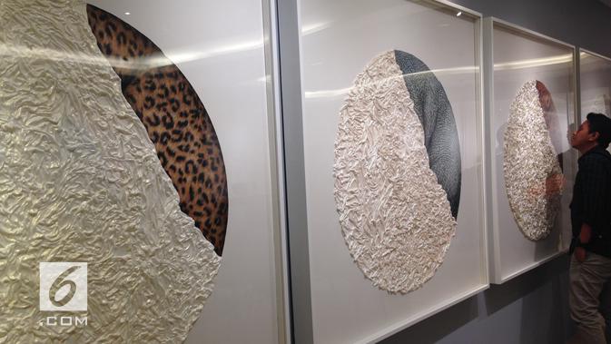 Liputan6.com, Jakarta - Ciptadana Art Program tahun ini menghadirkan karya seniman asal Sumatera Barat, Gusmen Heriadi. Mengusung tema Deep Skin - Skin Deep, karya-karya dalam pameran ini menuangkan gagasannya soal kebanggaan 'identitas' manusia yang berdampak pada lingkungan dan kehidupan makhluk lainnya.