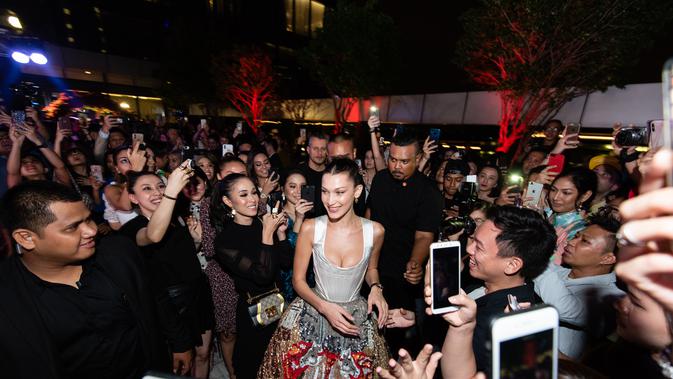 Bella Hadid sendiri kembali tampil memukau. Kali ini ia mengenakan busana rancangan Khoon Hooi, seorang perancang ternama di Malaysia dengan jam tangan Tag Heuer Formula 1 Lady.
