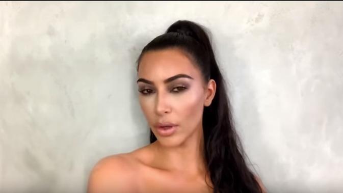 Untuk menghasilkan tampilan smokey, ia mulai dengan eyeshadow warna biru yang diaplikasikan ke seluruh kelopak matanya. Kemudian, warna yang terang diaplikasikan Kim di bagian tulang alisnya dan ia ratakan dengan jarinya. Bagian bawah matanya pun ia berikan contour yang membuat kesan smokey di wajahnya.