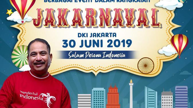 "Jangan lupa datang ke Jakarnaval 2019 tanggal 30 Juni 2019 di Kawasan Bundaran HI Hingga Monas. Ada banyak keseruan yang bisa disaksikan di sana. Yuk ke Jakarta!," ucap Menteri Pariwisata Terbaik di ASEAN itu.