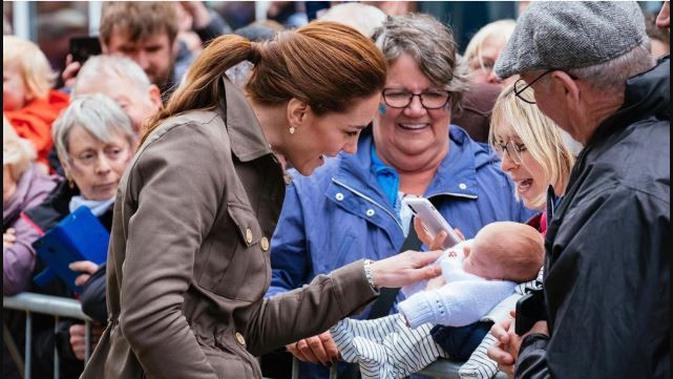Kate Middleton tak sendiri. Ia bersama Pangeran William menyapa publik dan berbincang dengan beberapa orang di luar tempat acara. Pada kesempatan itu, Duchess of Cambridge terlihat kasual dengan mengenakan jaket berkantung berwarna hijau zaitun.