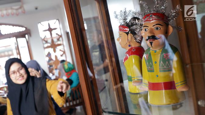 Pengunjung melihat resep makanan khas Betawi di salah satu sudut Museum Betawi, kawasan Setu Babakan, Jakarta, Minggu (23/6/2019). Dalam rangka perayaan HUT ke-492 Jakarta beragam acara kebudayaan khas betawi digelar di kawasan Setu Babakan, Jakarta. (Liputan6.com/Helmi Fithriansyah)