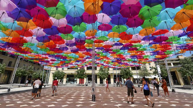 Umbrella Sky Project merupakan spot berteduh yang instagramable karya seniman Portugis Patricia Cunha.