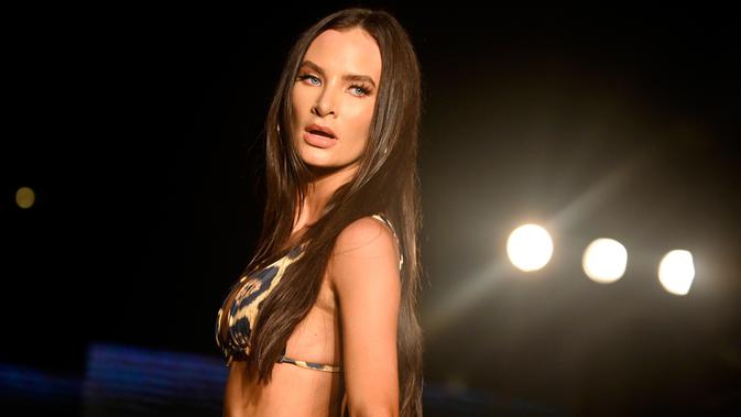 Model berpose mengenakan baju renang Agua De Coco oleh Planet Fashion selama Miami Swim Week 2019 di Miami Beach, Florida (11/7/2019). Miami Swim Week diadakan selama seminggu menghadirkan model-model seksi mengenakan baju renang di atas catwalk. (AFP Photo/Frazer Harrison)