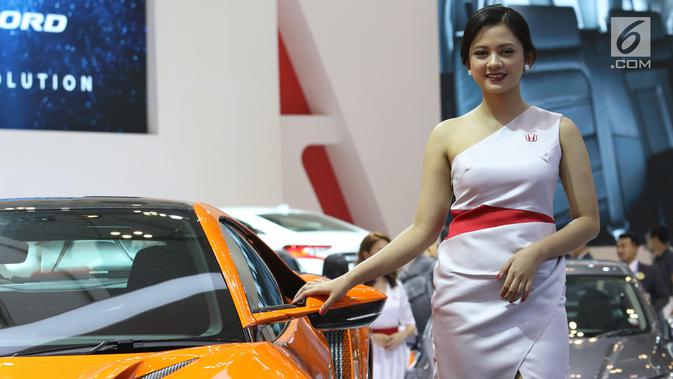 Model berpose saat pameran Gaikindo Indonesia International Auto Show (GIIAS) 2019 di ICE BSD, Tangerang, Sabtu (20/7/2019). Salah satu hal yang sulit terpisahkan dari perhelatan otomotif, adalah kehadiran para SPG atau model yang bersanding di samping mobil. (Liputan6.com/Angga Yuniar)