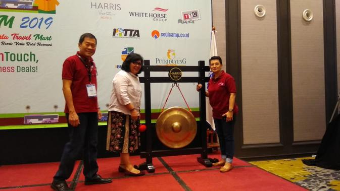 Liputan6.com, Jakarta Event Asita Jakarta Travel Mart 2019 (AJTM) yang diselenggarakan untuk mempertemukan antara pengelola wisata atau seller dengan agen wisata atau buyer menarik perhatian wisatawan. Event tersebut berlangsung sejak Selasa (24/9) lalu hingga Kamis (26/9). Acara AJTM 2019 digelar di lantai 5 Hotel Harris Vertu Harmoni Jakarta.
