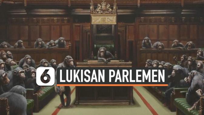 Liputan6.com, Jakarta Lukisan kareya seniman mural inggris Bansky berhasil dilelang Rp 172 miliar. Lukisan bergambar simpanse di ruang sidang parlemen ini, dianggap menggambarkan situasi politik Inggris saat ini.