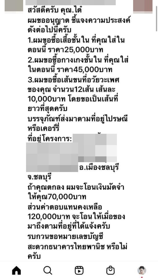 ดารา-นักแสดงในวงการหลายคนที่เคยประสบปัญหาการถูกแชทหื่น พร้อมทักขอซื้อของส่วนตัวกันมาไม่น้อย รายล่าสุด ก็เป็น พิธีกรสาว ได๋ ไดอาน่า ที่เจ้าตัวได้เล่าให้ให้ฟัง พร้อมแนบหลักฐานการสนทนากับบุคลลดังกล่าวไว้ว่า