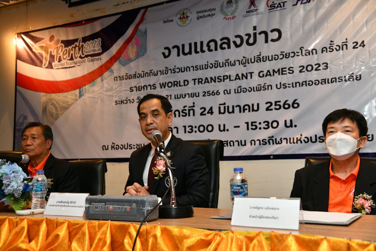 นายสัณหณัฐ สีจำปี นายกสมาคมกีฬาผู้เปลี่ยนถ่ายอวัยวะแห่งประเทศไทย เป็นประธานในงานแถลงข่าวการส่งนักกีฬาเข้าร่วมการแข่งขันกีฬาผู้เปลี่ยนอวัยวะโลก ครั้งที่ 24 รายการ “เวิลด์ ทรานสแพลนท์ เกมส์ 2023” ณ เมืองเพิร์ท ประเทศออสเตรเลีย โดยมี นายวันชัย เทียมศรี ตัวแทนบริษัท มาราธอน (ประเทศไทย) จำกัด รวมทั้งคณะผู้ฝึกสอน และนักกีฬาผู้เปลี่ยนถ่ายอวัยวะทีมชาติไทย เข้าร่วมด้วยที่ห้องประชุม 222 ราชมังคลากีฬาสถาน การกีฬาแห่งประเทศไทย (กกท.) หัวหมาก เมื่อวันที่ 24 มีนาคม