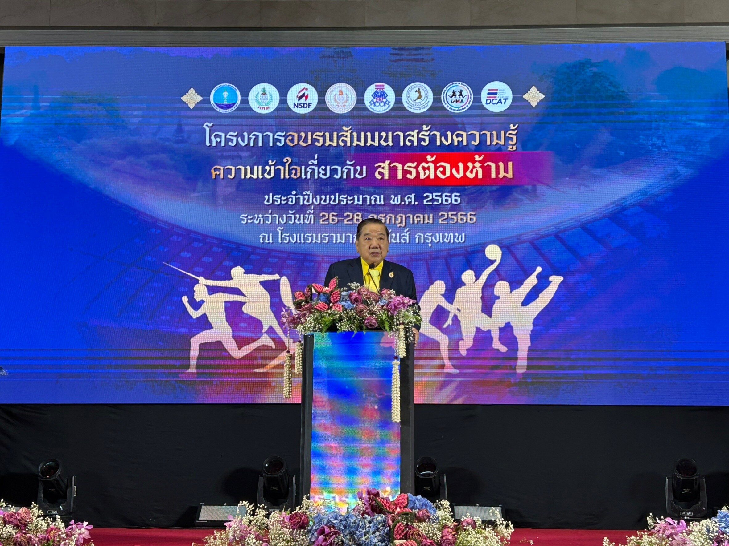 การกีฬาแห่งประเทศไทย (กกท.) ร่วมกับกองทุนพัฒนาการกีฬาแห่งชาติ (NSDF) และสมาคมกีฬามวยอาชีพแห่งประเทศไทย จัดการอบรมโครงการสัมมนาสร้างความรู้ ความเข้าใจเกี่ยวกับสารต้องห้าม ประจำปีงบประมาณ พ.ศ.2566 ระหว่างวันที่ 26-28 กรกฎาคม 2566 ที่โรงแรมรามาการ์เด้นส์ ให้กับผู้เข้าร่วมการอบรม ทั้งนักกีฬา โค้ช และผู้ที่เกี่ยวข้องด้านกีฬา เพื่อสร้างการรับรู้เรื่องสารต้องห้าม และนำองค์ความรู้ไปถ่ายทอดในองค์กร เช่น หากโดนสุ่มเก็บตัวอย่าง จะต้องเข้าใจกระบวนการ และขั้นตอนต่างๆ ให้ละเอียด สร้างความเข้าใจแก่บุคลากรที่เกี่ยวข้อง หากพิสูจน์ความผิดพบว่าจริง ก็จะมีบทลงโทษคือ ห้ามยุ่งเกี่ยวกับวงการกีฬา ถือว่ารุนแรงมาก